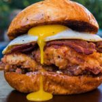 In a protein-packed Breakfast Chicken Sandwich, bursting with flavor and nutrients. Savor tender chicken, melted cheese, and perfectly cooked eggs between toasted bread. A satisfying start to any day!